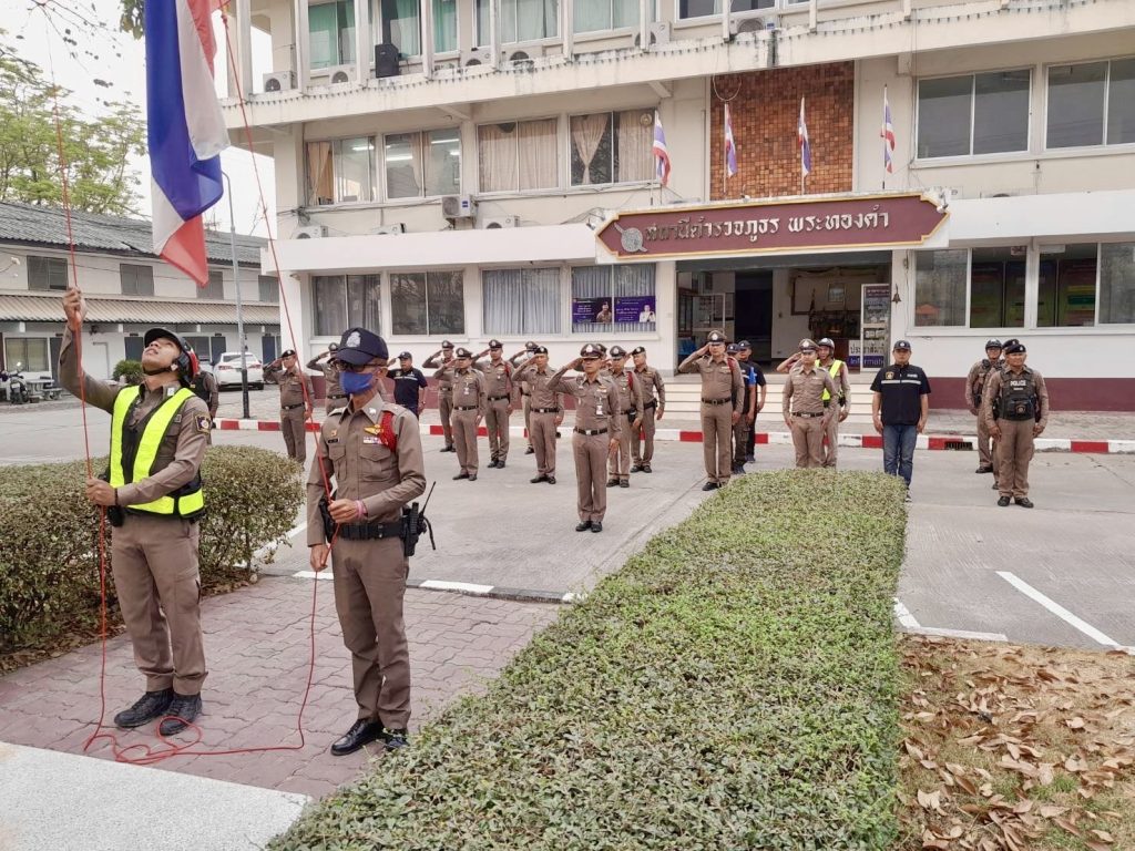 พ.ต.อ.อิทธิพัทธ์ ศรีมั่น ผกก.สภ.พระทองคำ และข้าราชการตำรวจ สภ.พระทองคำ ได้มาปล่อยแถวและทำการตรวจเครื่องแต่งการ อาวุธปืน พร้อมด้วยอุปกรณ์ที่ใช้ในการปฏิบัติหน้าที่สายตรวจพระทองคำ เพื่อให้มีความพร้อมก่อนปฏิบัติหน้าที่และเป็นการรักษาความปลอดภัยในการปฏิบัติหน้าที่