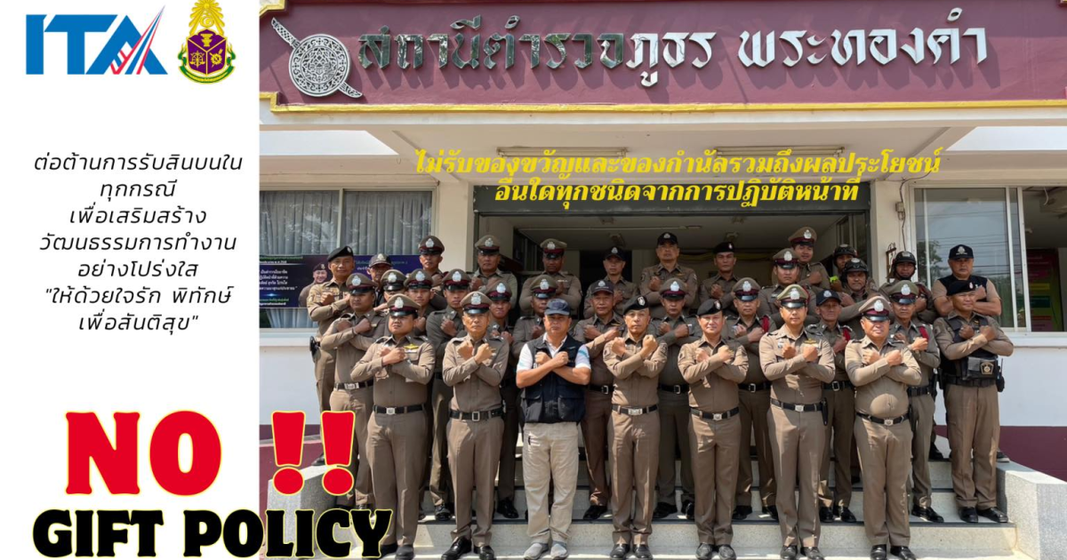 สถานีตำรวจภูธรพระทองคำ ทุกนาย ได้ทำกิจกรรมในการประกาศเจตจำนงในการบริหารงานของสถานีตำรวจภูธรพระทองคำ นโยบายต่อต้านการรับสินบน และการไม่รับของขวัญของกำนัลหรือประโยชน์อื่นใด จากการปฏิบัติหน้าที่