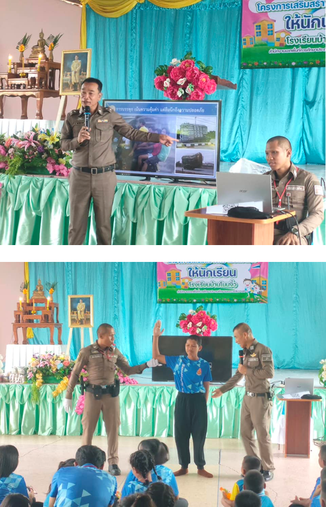 พ.ต.อ.อิทธิพัทธ์ ศรีมั่น ผกก.พระทองคำ ได้มอบหมาย พ.ต.ท.เสน่ห์ บุญเกษม สวป.สภ.พระทองคำ ครูตำรวจแดร์ จราจร ให้ความรู้ นักเรียนโรงเรียนบ้านโนนงิ้ว ต.ทัพรั้ง อ.พระทองคำ เพื่อให้ความรู้เรื่อง โทษและพิษภัยยาเสพติด ความปลอดภัยการใช้รถใช้ถนน ป้องกันการถูกล่วงระเมิดทางเพศในโลกออนไลน์หนี ซ่อน สู้
