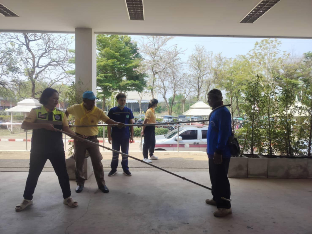 สภ.พระทองคำ โดยการรำของ พ.ต.อ.อิทธิพัทธ์ ศรีมั่น ผกก.สภ.พระทองคำ ร่วมกับนายสุวีระศักดิ์ ริ้วรอดผู้อำนวยการโรงพยาบาลพระทองคำเฉลิมพระเกียรติ 80 พรรษาโดยทำการซ้อมแผนเผชิญเหตุควบคุมคนวิกลจริตโดยใช้ไม้ง่าม ที่โรงพยาบาลเฉลิมพระเกียรติ 80 พรรษา เพื่อ ให้เจ้าหน้าที่และผู้ที่มีส่วนเกี่ยวข้องทราบถึงบทบาทหน้าที่ในการปฏิบัติงานเมื่อเกิดสถานการณ์จริง