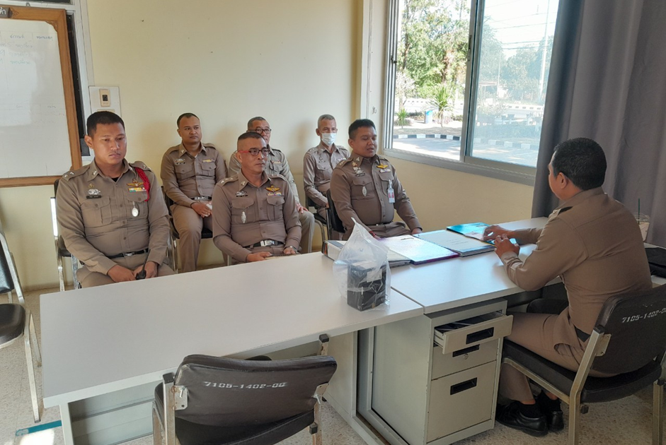 วันที่ 25 ตุลาคม 2567 พ.ต.ท.วิสิฏฐ จงอ้อมกลาง รอง ผกก.สภ.พระทองคำ เรียกข้าราชการงานสอบสวน สภ.พระทองคำ ประชุมพนักงานสอบสวน เสมียรประจำวัน เสมียรคดี และพลขับ เพื่อแจ้งข้อสั่งการต่างๆ