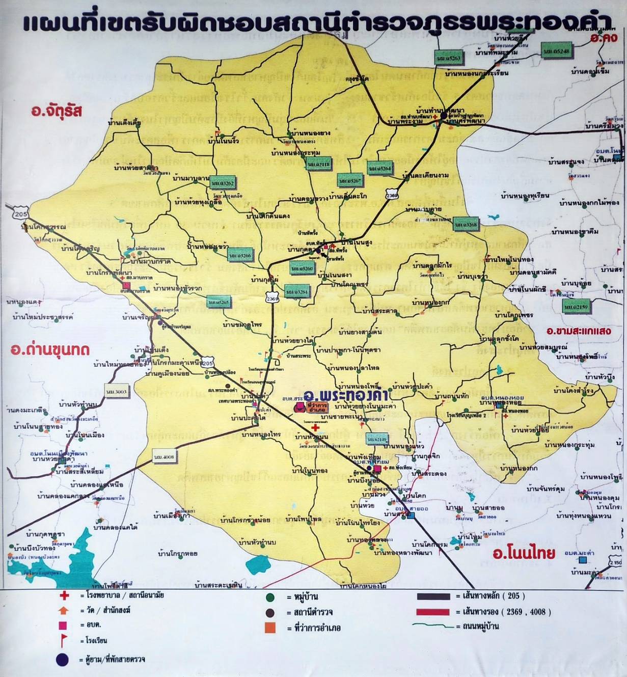 - สายตรวจรถจักรยานยนต์ รับผิดชอบในเขตเทศบาลตำบลพระทองคำ และเทศบาลตำบลสระพระ (ในเขตเทศบาล)