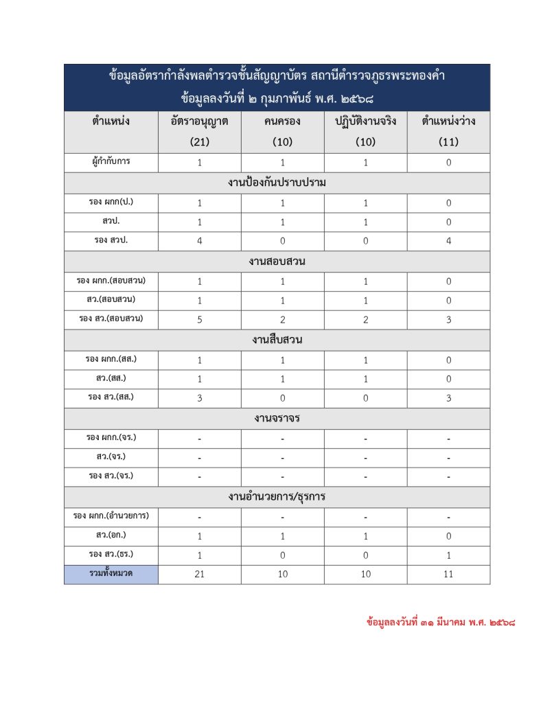 ข้อมูลลงวันที่ 31 มีนาคม 2568
