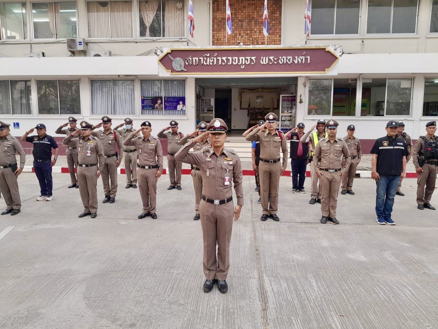 พ.ต.อ.อิทธิพัทธ์ ศรีมั่น ผกก.สภ.พระทองคำ และข้าราชการตำรวจ สภ.พระทองคำ ได้มาปล่อยแถวและทำการตรวจเครื